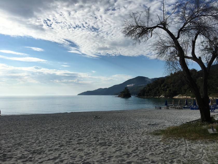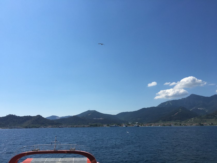 There are many places to visit along the road going all around the island – lovely monasteries, and ancients ruins scattered everywhere, since Thasos was famous for its white marble and olive oil and thrived both in Ancient Greek and Roman times. There are also lovely little mountain villages and hiking trails in the forest. All this was explained to me by Athina and Yannis, who very kindly took me out to eat in a little taverna by the sea, where we had the most amazing fish, accompanied by various local delicacies. Unfortunately, I did not have much time, so I only managed to swim in the sea. But I will definitely be back!