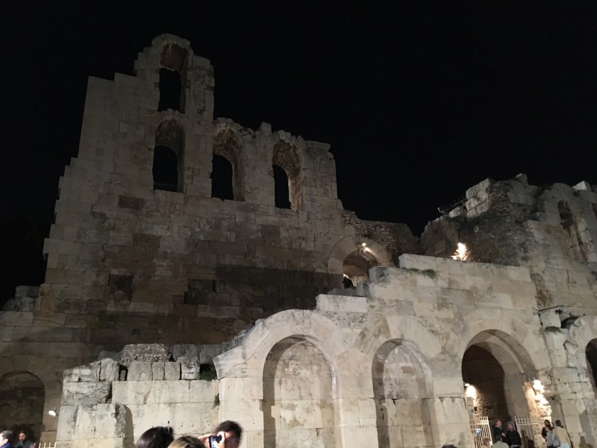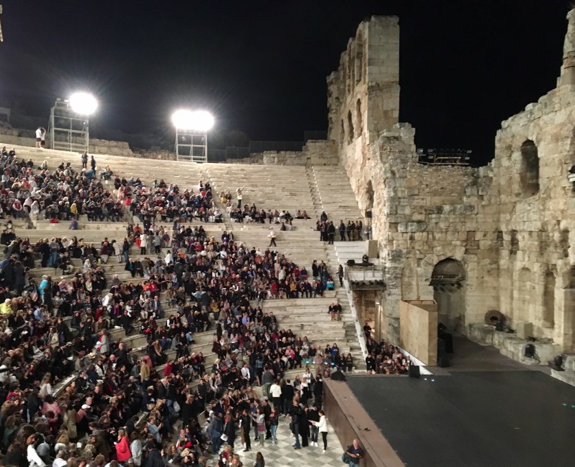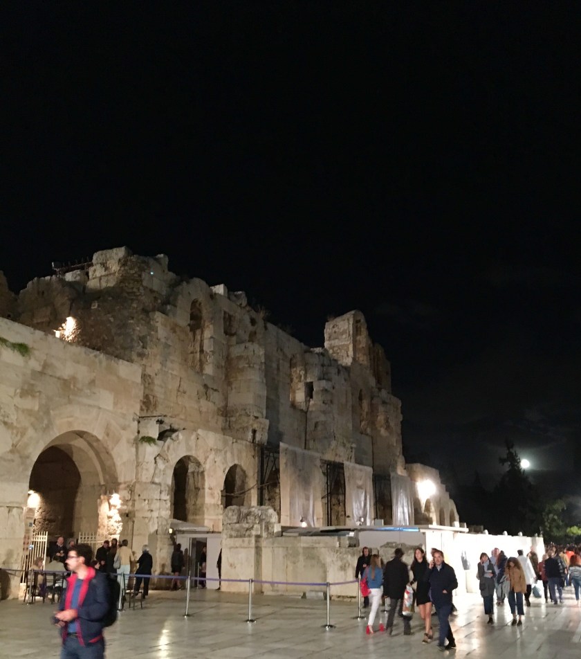 At the entrance to the ancient theatre a huge full moon greeted us—during the performance we could see it rising slowly above the stone walls.