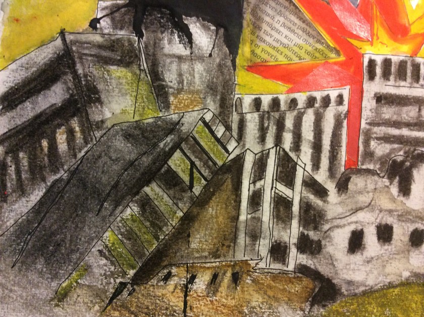 To come back to the blog, it will not have escaped the notice of older readers that I have been writing less often of late. Well, I lead a very busy life, shared between Greece and France, since we have had to make big changes due to the above-mentioned crisis. So, my days are full: and, besides work, I have been doing a lot of drawing and painting, as most of you know—and writing, about which you don’t, since I never put any of it on the blog. I also volunteer for two refugee organisations in Greece, which I have not talked about yet—but maybe I will in future, since it has been a most interesting, although often heartbreaking, challenge.