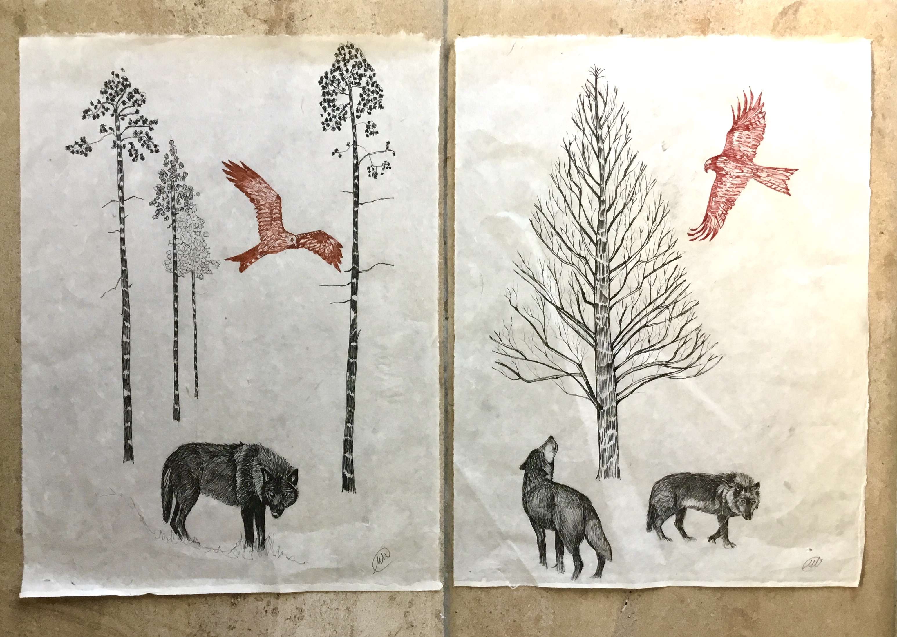 Wolf series. Ink on Nepalese paper