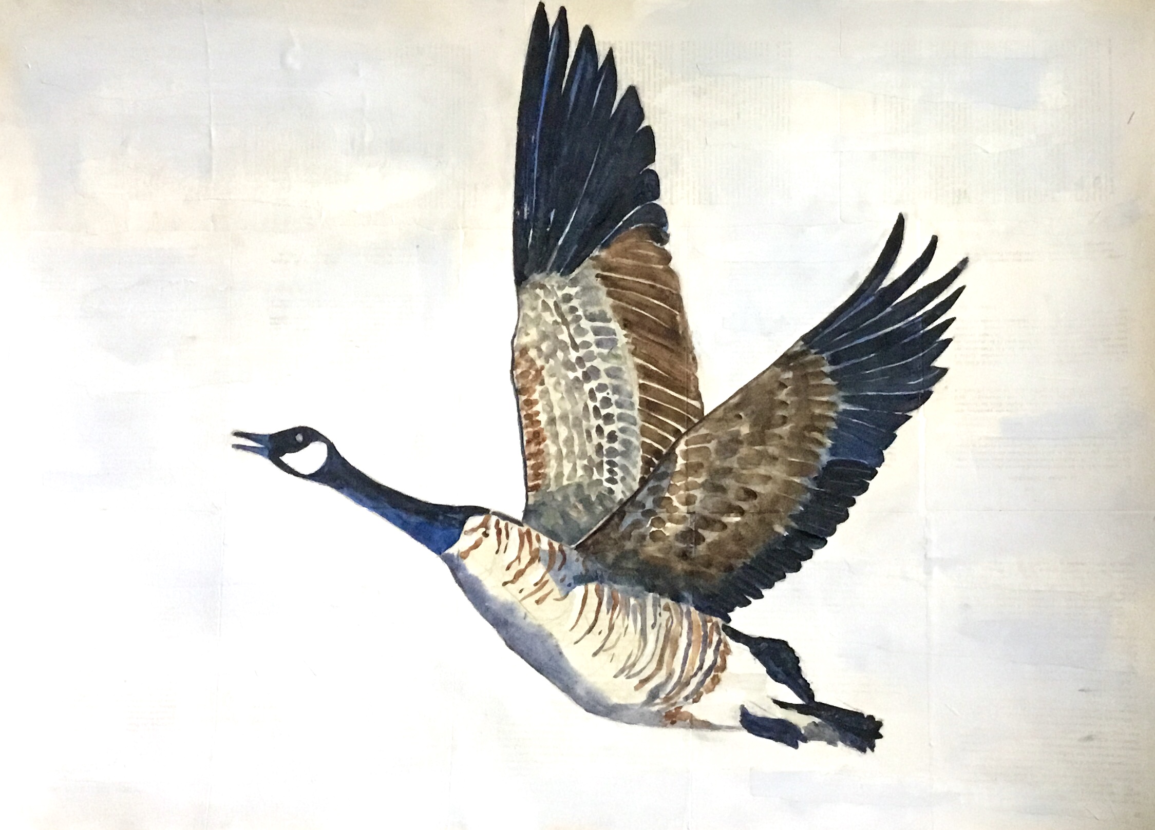 Canada geese. Part of a six-panel work on paper.