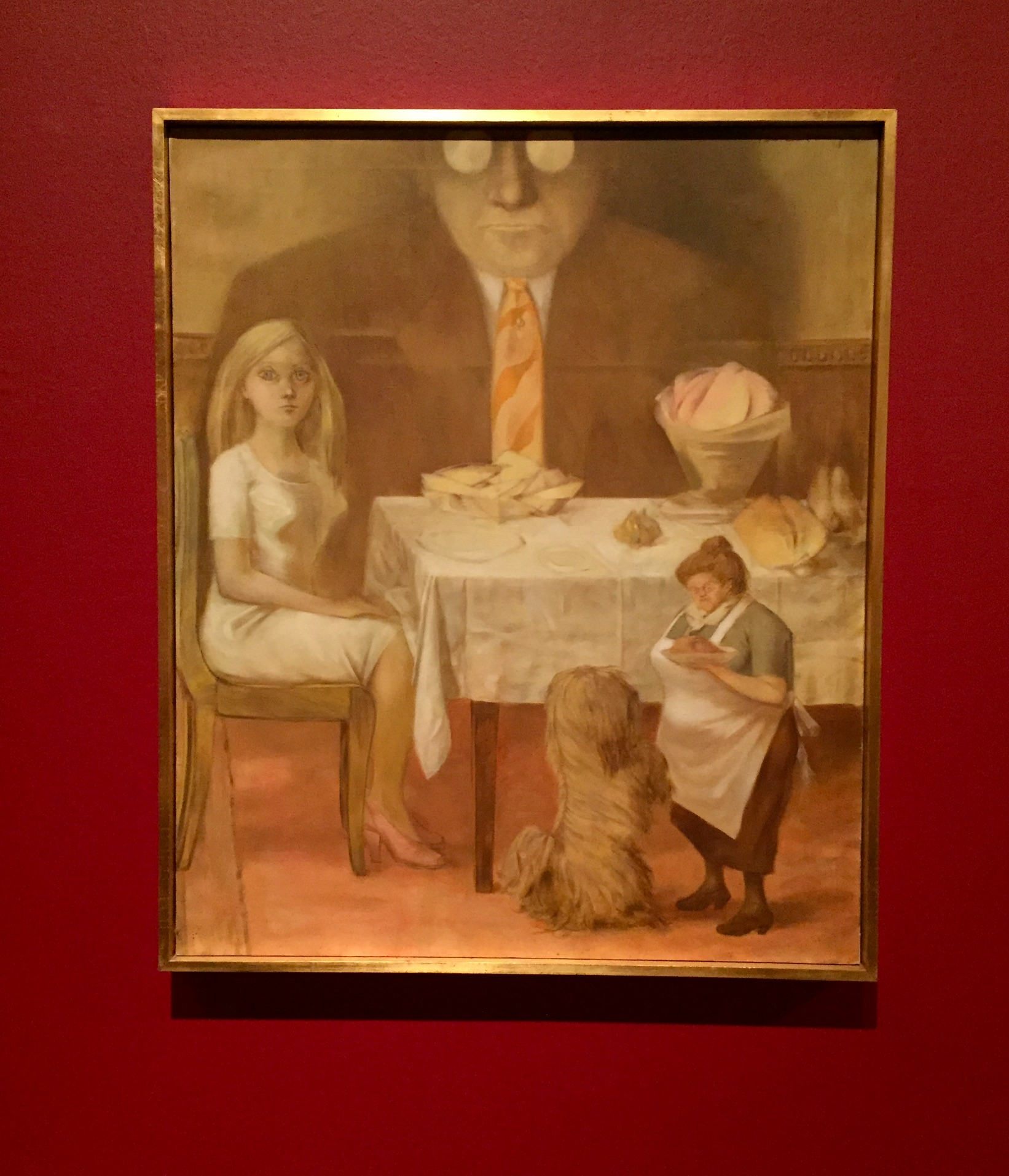 One of my favorite  works is the one entitled ‘Portrait de famille.’ The ghostly, looming presence of the father, the spoilt, entitled daughter, the maid who is at the same level as the dog. It unsettles the viewer while making him smile.