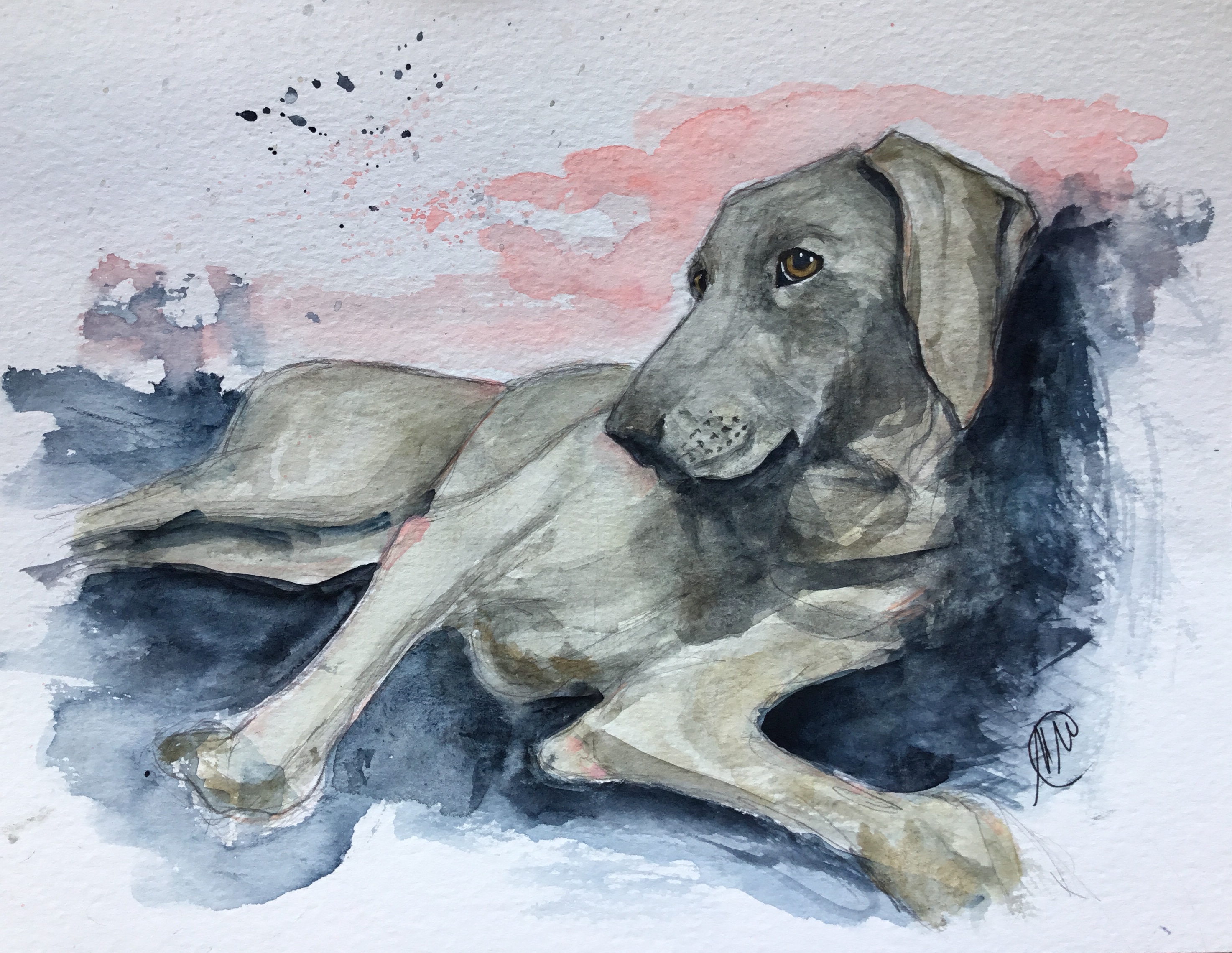 Valerie, a Weimaraner who likes to strike mournful poses, although she’s full of pep